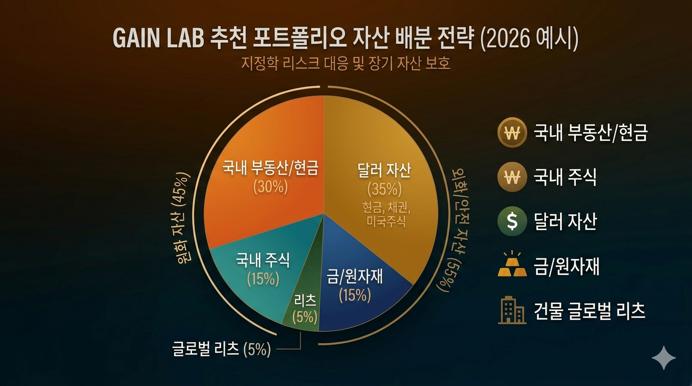 현재 포트폴리오에서 달러 표시 자산이 20% 미만이라면, 30~40% 수준으로 점진적 확대를 검토할 가치가 있습니다.